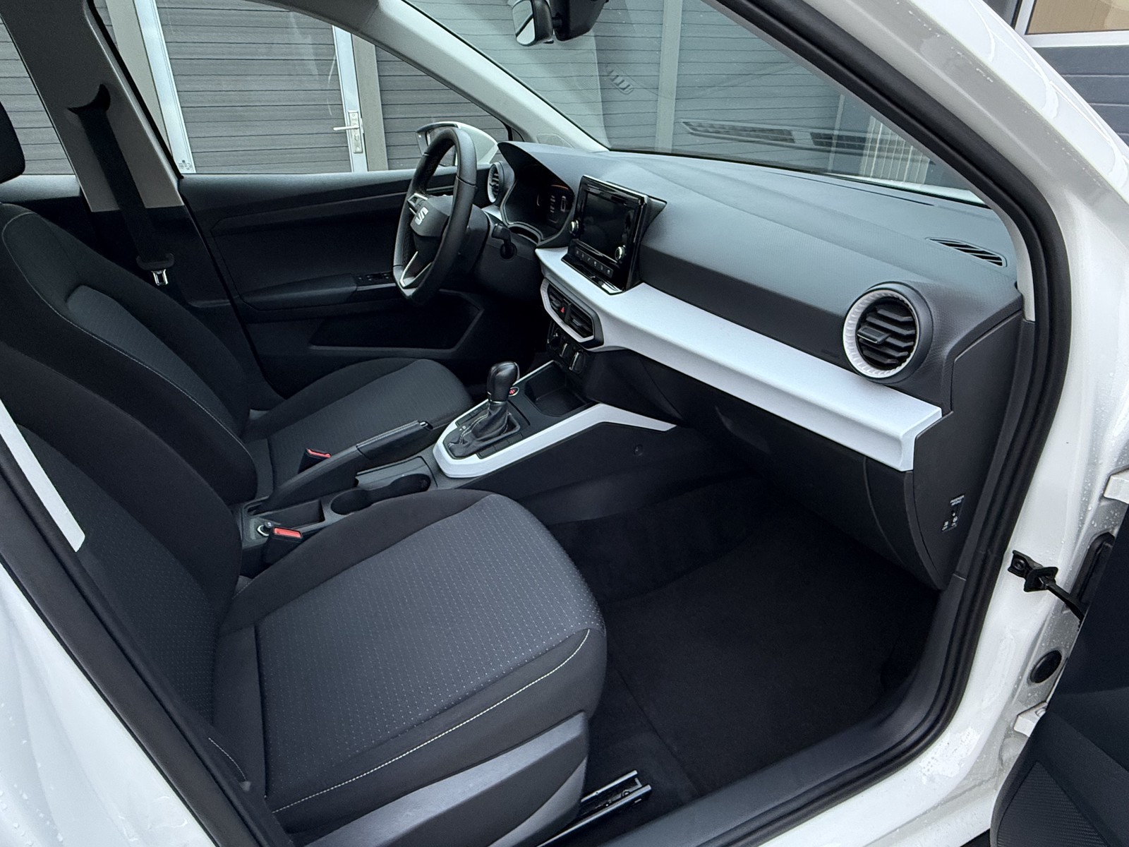 Die umfangreiche Ausstattung umfasst ein digitales Cockpit mit Touchscreen, Navigationssystem, Apple CarPlay und Android Auto. Für zusätzliche Sicherheit sorgen zahlreiche Assistenzsysteme wie Spurhalteassistent, Müdigkeitserkennung und Kollisionsvermeidung. Die LED-Scheinwerfer und Tagfahrlichter bieten optimale Sicht bei allen Lichtverhältnissen. Die weiße Außenlackierung harmoniert perfekt mit dem grauen Stoffinterieur.